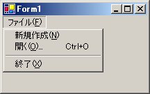 Private Sub Form1_Load(ByVal sender As System.Object, ByVal e As System.EventArgs) Handles MyBase.Load 'ショートカット[Ctrl]+[O]を設定 MenuFileNew.Shortcut = Shortcut.CtrlO End Sub