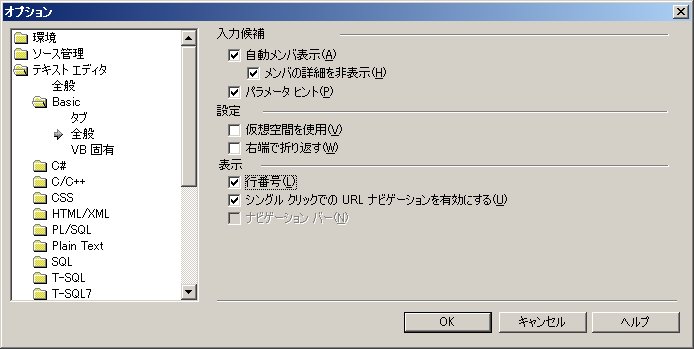 通常ヘルプは、開発環境内部に表示されますが、別ウィンドウとして表示することも出来ます。メニューの[ツール]-[オプション]でオプションウィンドウを開き、ウィンドウの左側で[環境]-[ヘルプ]を選択し、右側で[外部ヘルプ]を選択します。元に戻す場合は[内部ヘルプ]を選択します。