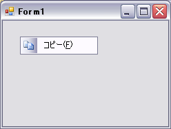 'イメージなし Private Sub Form1_Load(ByVal sender As System.Object, ByVal e As System.EventArgs) Handles MyBase.Load 'メニュー項目の作成 Dim item As New ToolStripMenuItem item.Text = "コピー(&C)" 'メニュー項目を追加 ContextMenuStrip1.Items.Add(item) 'フォームに関連づける Me.ContextMenuStrip = ContextMenuStrip1 End Sub