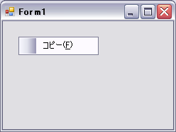 Private Sub Form1_Load(ByVal sender As System.Object, ByVal e As System.EventArgs) Handles MyBase.Load 'メニュー項目の作成 Dim item As New ToolStripMenuItem item.Text = "コピー(&C)" 'イメージマージンを非表示にする ContextMenuStrip1.ShowImageMargin = False 'メニュー項目を追加 ContextMenuStrip1.Items.Add(item) 'フォームに関連づける Me.ContextMenuStrip = ContextMenuStrip1 End Sub