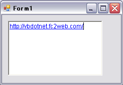 Private Sub Form1_Load(ByVal sender As System.Object, ByVal e As System.EventArgs) Handles MyBase.Load 'URLを自動的にリンクとして書式設定する RichTextBox1.DetectUrls = True End Sub