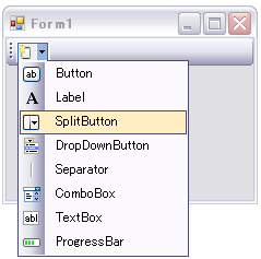 また、コードでToolStripにスプリットボタンを追加するにはToolStripSplitButtonクラスを使用します。