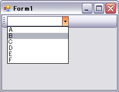 Private Sub Form1_Load(ByVal sender As System.Object, ByVal e As System.EventArgs) Handles MyBase.Load '=== ToolStripに追加するコンボボックスの作成 ここから === Dim itemCombo As New ToolStripComboBox itemCombo.Items.Add("A") itemCombo.Items.Add("B") itemCombo.Items.Add("C") itemCombo.Items.Add("D") itemCombo.Items.Add("E") itemCombo.Items.Add("F") '=== ToolStripに追加するコンボボックスの作成 ここまで === 'ToolSripへ追加 ToolStrip1.Items.Add(itemCombo) End Sub